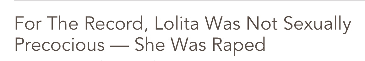 Too real. Lolita means so much to me, because I was raped by an older adult man when I was 15 and years later when I came forward about it people said it was my fault because I flirted with him. A friend of his even teased me with the comment “weren’t you his little Lolita?” Lolita. Is Not. A love story. The continuous sexual abuse of a teenage girl is not love.