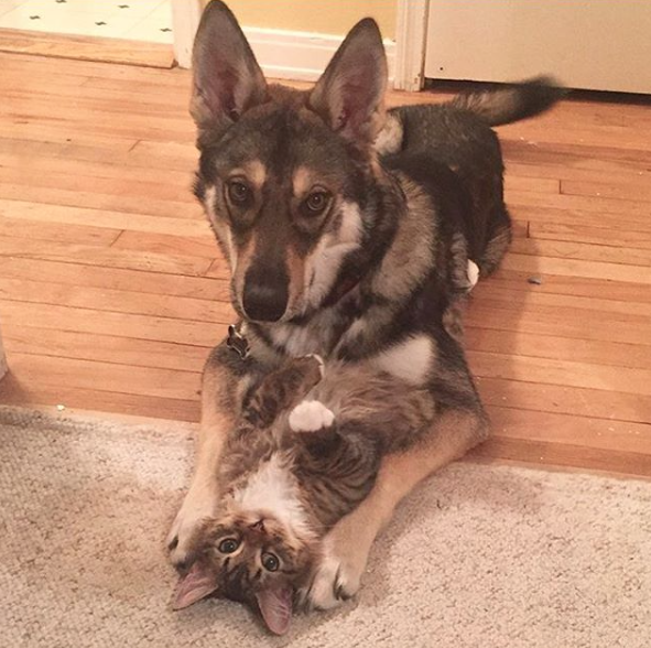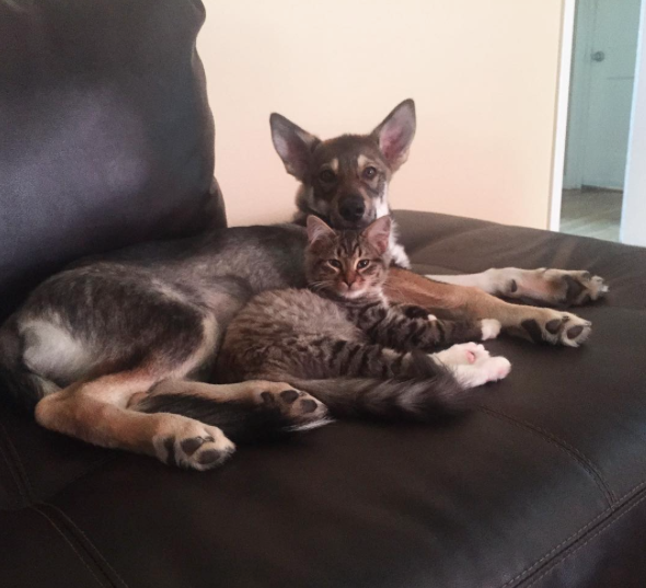 Raven was in no hurry to pick out a new best friend at the shelter. After all, this was a lifetime commitment. Raven was still a puppy. And last August, she was choosing a kitten at the animal shelter in Lubbock, Texas — a kitten she could grow old with. So one by one, four kittens were brought before Raven. Some didn’t show much interest. Others just weren’t into Raven’s gentle nuzzling. Except that one kitten. A formidable feline named Woodhouse. Woodhouse would be The One.