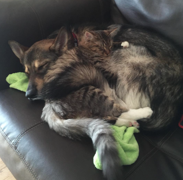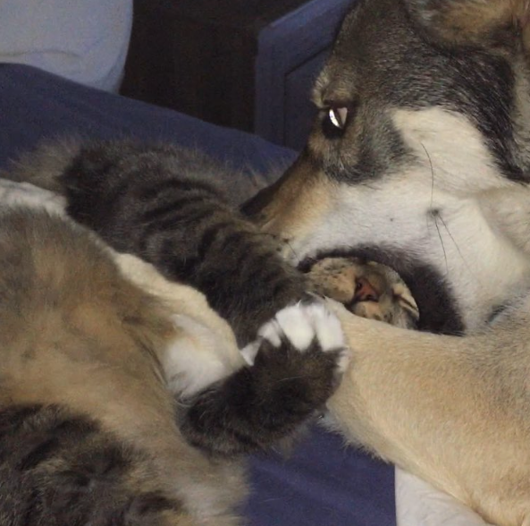 Raven was in no hurry to pick out a new best friend at the shelter. After all, this was a lifetime commitment. Raven was still a puppy. And last August, she was choosing a kitten at the animal shelter in Lubbock, Texas — a kitten she could grow old with. So one by one, four kittens were brought before Raven. Some didn’t show much interest. Others just weren’t into Raven’s gentle nuzzling. Except that one kitten. A formidable feline named Woodhouse. Woodhouse would be The One.